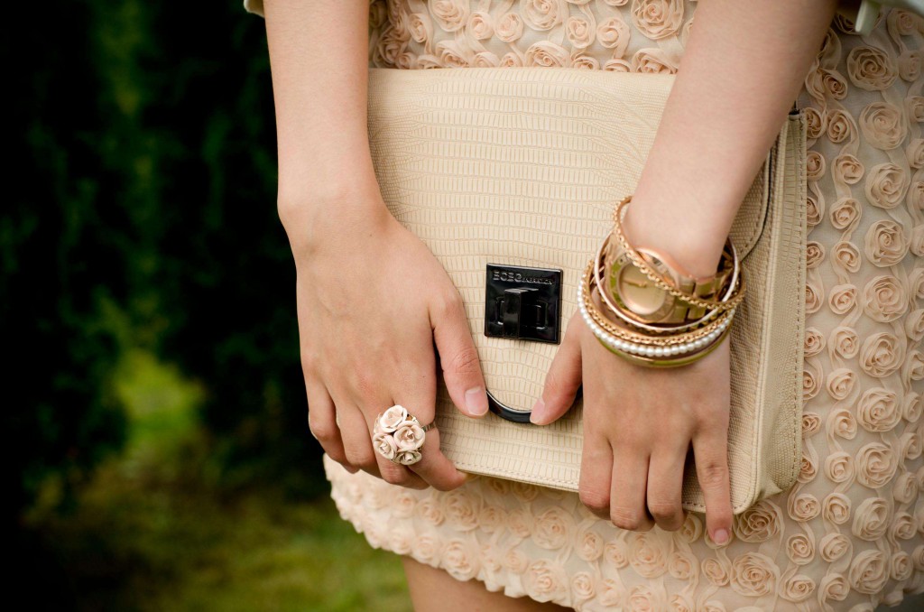 I’m wearing… Blouse Thrifted Paul & Joe, Blazer Loft, Rose Skirt Vero Moda from the Bay, Shoes Guess, Envelope Purse BCBGeneration, and Jewellery Forever 21 & Aldo.