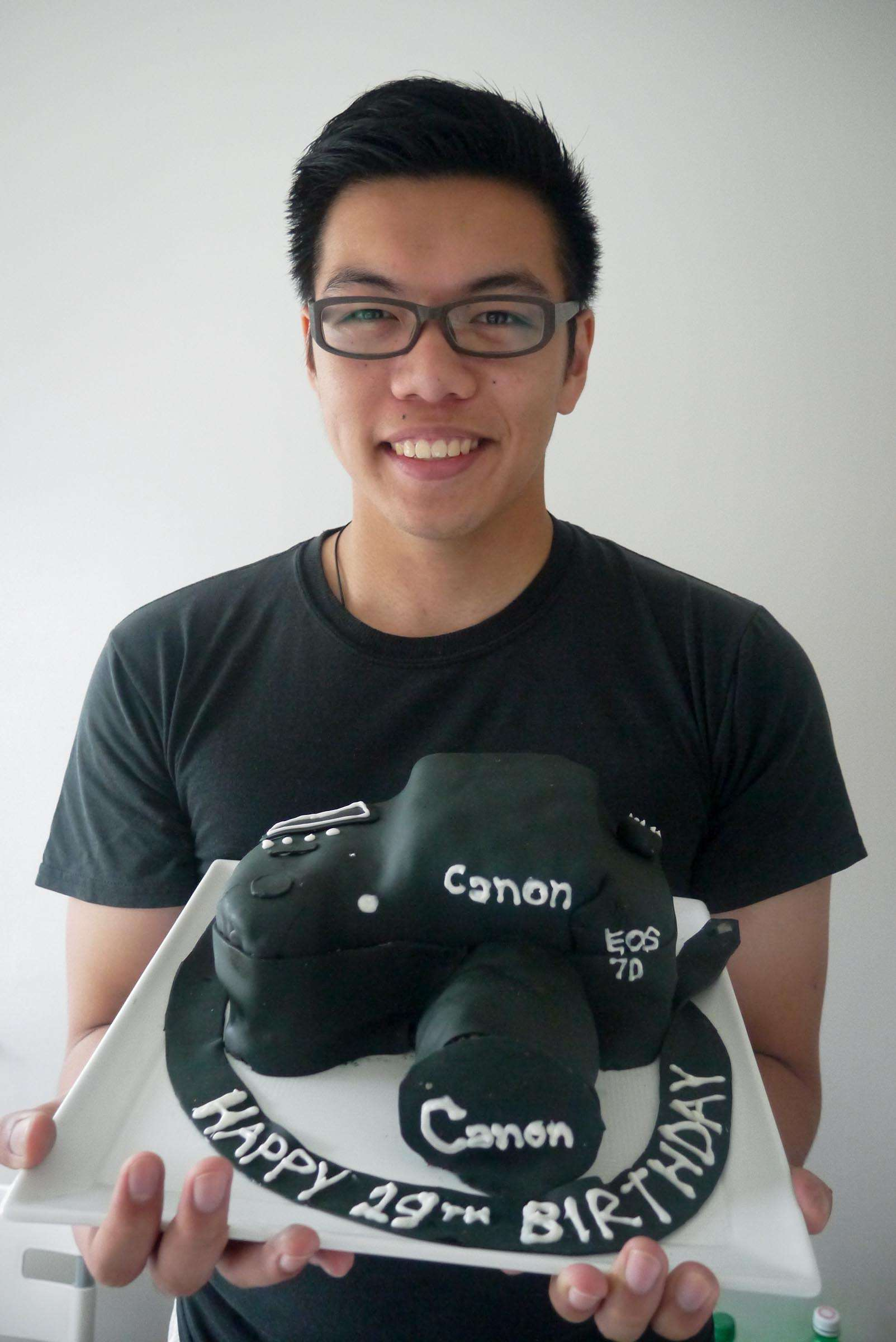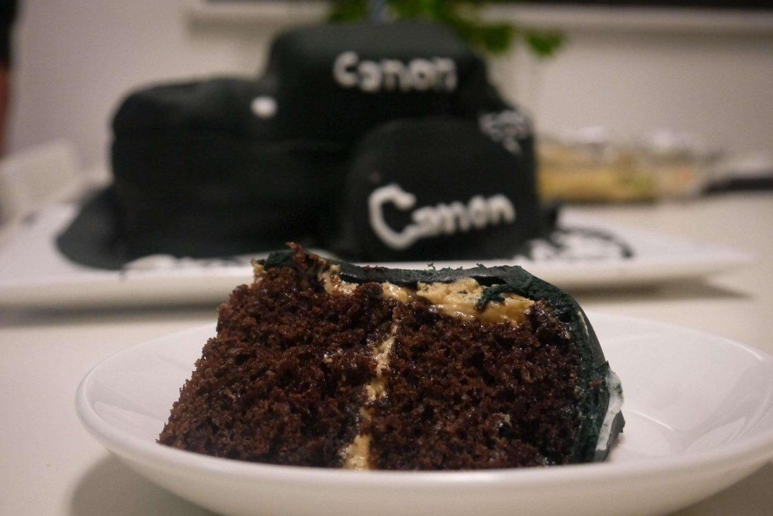 This past weekend, we celebrated my little brother’s birthday. He’s finally 19 – and you all know what that means… Alcohol (and lots of it!). I mean… Cameras (and lots of it)! Against my brother’s better judgement, I invoked a photography theme to his party. I decided to make a camera cake, camera cookies, camera cupcakes & a “happy birthday” polaroid banner. I even challenged him to take a shot every time someone said the word “picture”. That plan didn’t follow through as my mom said it three times before we even ate dinner. You know how filipino parents love taking pictures of the table of food before it’s all devoured.