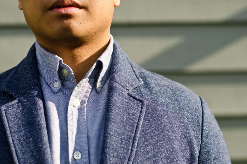 I’m wearing: Navy Recycled Fleece Blazer Wings+Horns, Button up Wings+Horns, Natural Leather Belt Tanner Goods, Skinny Guy Jeans Naked and Famous, Shoes Pegabo